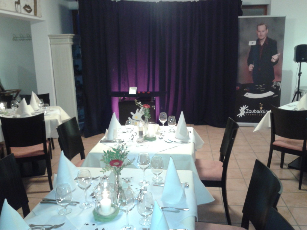 Das Magische Dinner kann auch für Privat- und Firmenveranstaltungen an Ihrem Wunschtermin gebucht werden und findet im Nebenraum in gemütlicher und privater Atmosphäre statt. Sprechen Sie uns einfach an und wir kümmern uns um alles.